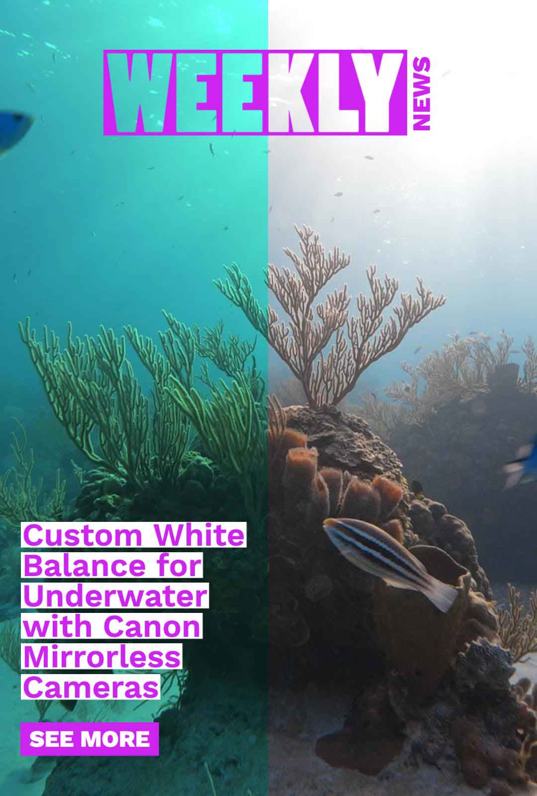 This week why manual white balance is imperative to underwater video and everything you need to know about custom white balance to achieve the best results, the best Canon RF-mount lenses for every situation underwater, rigorous but rewarding cold water macro photography in southern California, we welcome Fritz Liechti as our newest ambassador, and setting up TTL Underwater Strobes for Canon R7 and R10.